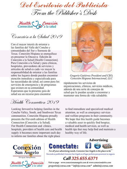 Conexión Hispana it’s the creator and developer of this new concept of Health. On 3/2009 Produce the first Health Connection Guide Book. This website Health Connection is developed in 2017.